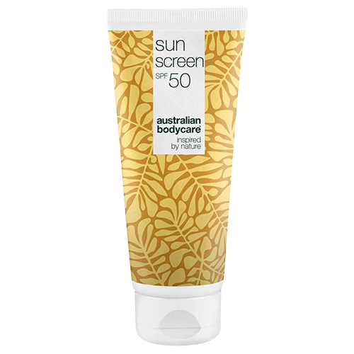 Australian Bodycare Solcreme SPF 50. Ideel til alle hudtyper. Vandafvisende og fri for parabener, sikrer effektiv UV-beskyttelse og hudpleje.