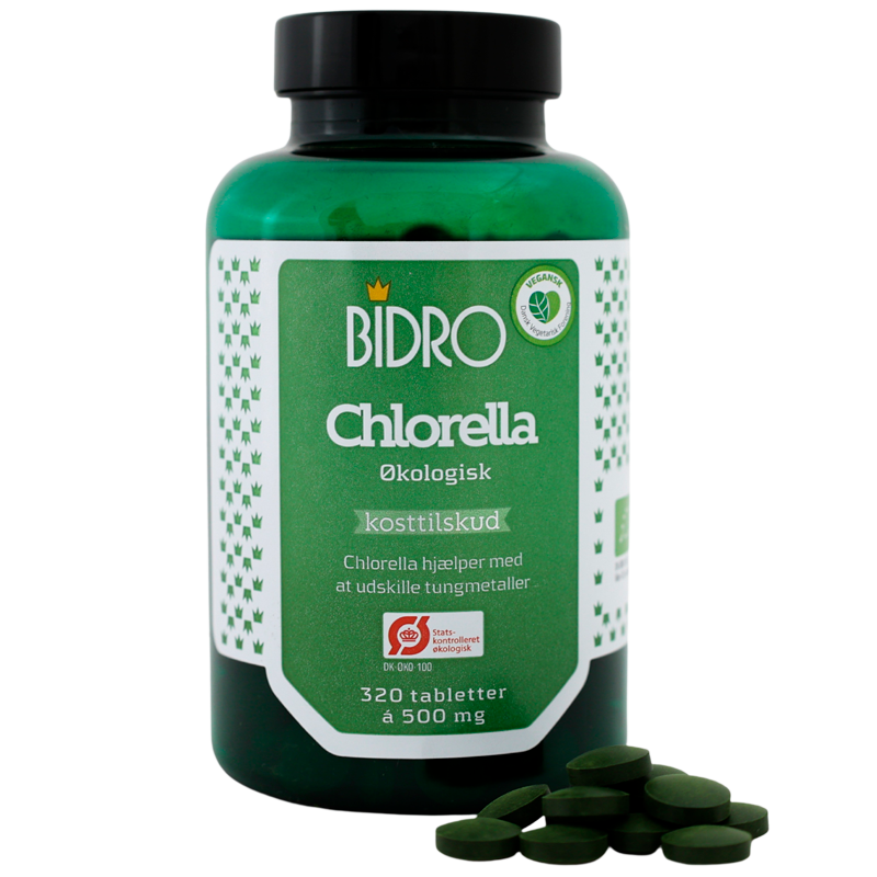 Bidro Chlorella Pyrenoidosa er en vegansk, økologisk ferskvandsalge, den er med brudt cellevæg, og med et indhold af protein.
