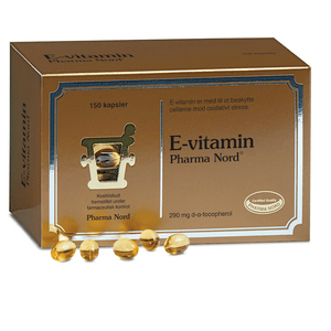 Pharma Nord Bio-E-Vitamin med naturligt d-a-tocopherol i en mængde svarende til 290 mg E-vitamin Bio-E-Vitamin fra Pharma Nord er et stærkt vitaminpræparat til forebyggelse og behandling af mangel på E-vitamin. Vitaminpræparatet består af klare, bløde gel