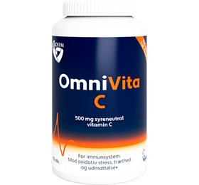 OmniVita C indeholder hele 500 mg C-vitamin kombineret med calcium og magnesium. Magnesium og calcium er tilført for at neutralisere vitaminets eventuelle syrevirkning, og tåles derfor bedre af personer med sarte slimhinder, uden at kvaliteten af det akti