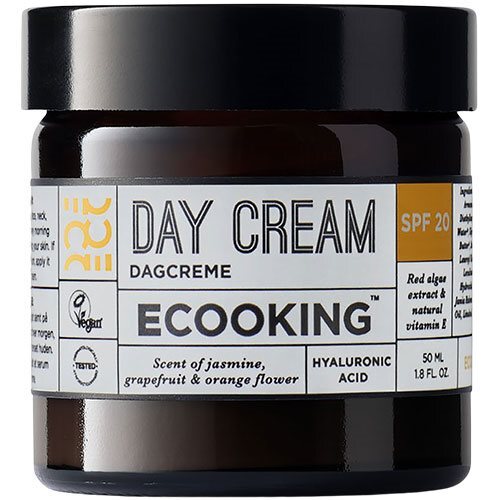 Day Creme from Ecooking. Dagcreme SPF 20 indeholder flere af vores yndlingsingredienser, såsom fugtgivende hyaluronsyre og beskyttende E-vitamin, samt to kemiske solfiltre til at værne din hud mod solens UVA- og UVB-stråler.Med Dagcreme SPF 20 kan du både