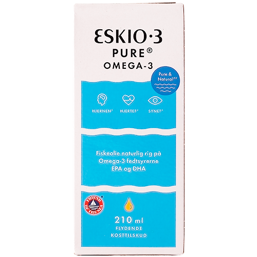 Eskio-3 pure er den bedst dokumenterede naturlige fiskeolie på markedet. Med Eskio-3 får du ikke ubehagelige opstød. Pakken indeholder 210 ml og har en mild citrussmag.