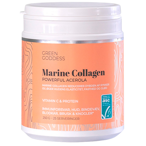 Marine collagen fra et ASC-certificeret hav- og dambrug. www.asc-aqua.org. Marine collagenpulver med højt indhold af Vitamin C fra økologisk acerola og tilsat naturlig aroma. Klinisk studie.