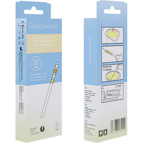 Urinvejsinfektion hjemmetest – Denne hjemmetest screener for tegn på blærebetændelse ved at påvise nitrit og leukocytter i urinen. Du får svar inden for få minutter og kan handle hurtigt, hvis du oplever symptomer som svie eller hyppig vandladning.