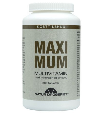 13 vitaminer og 10 mineraler samlet i én multivitamintablet. Det får du, når du køber Maximum fra Natur-Drogeriet. Desuden er der tilsat Panax Ginseng C. A. Meyer.