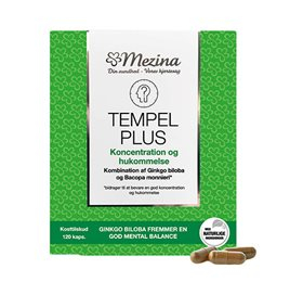Tempel Plus er en unik kombination af to naturlige urter, Ginkgo biloba og Bacopa monnieri, der arbejder sammen for at forbedre din mentale sundhed og hjælpe med at bevare en god koncentration og hukommelse.