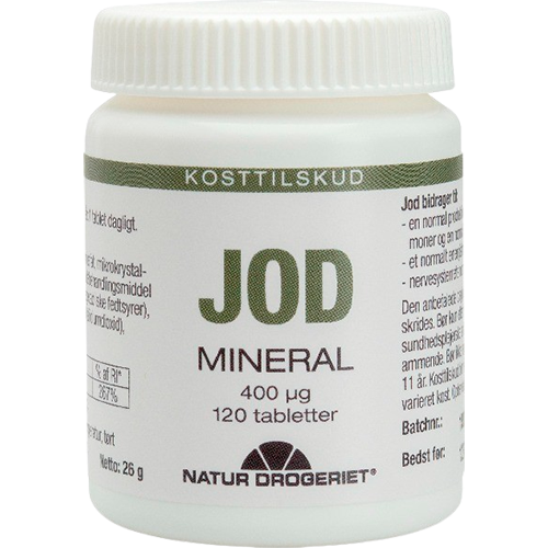 Jod er et grundstof, som er nødvendigt for skjoldbruskkirtlens funktion. Jod bidrager også til et normalt energistofskifte og nervesystemets normale funktion