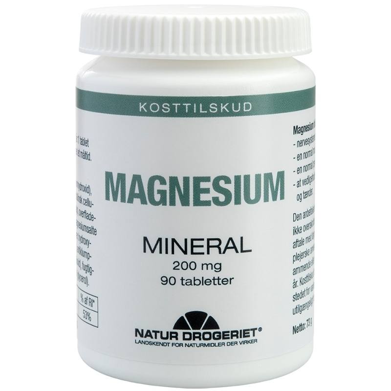 Natur Drogeriet Magnesium 200 mg er et kosttilskud til voksne og børn fra 11 år. Magnesium medvirker til at omdanne energi i kroppen og til, at du føler dig mindre træt og udmattet. Mineralet medvirker til, at dine muskler og dit nervesystem fungerer norm