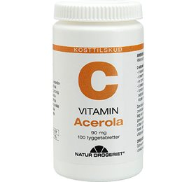 Lækker tyggetablet med acerolaekstrakt og C-vitamin. Acerola-frugten er rød, lille og minder om et kirsebær, men har en meget syrlig smag.
