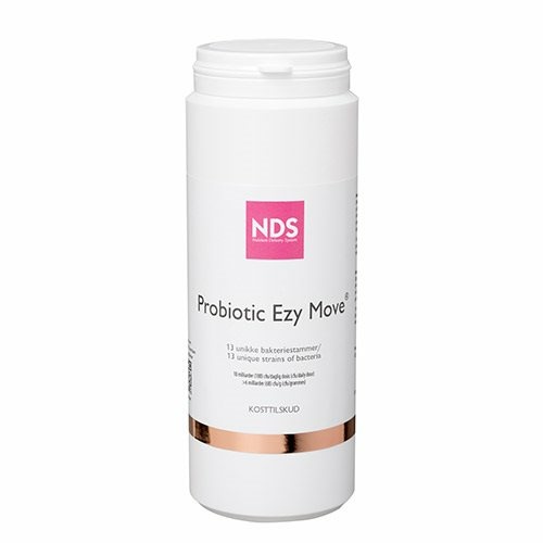Probiotic Ezy Move er et kosttilskud med 13 individuelle bakteriestammer i pulverform i en base af mineralblanding af mangan, magnesium og kalium samt collagen peptider og enzymet amylase.