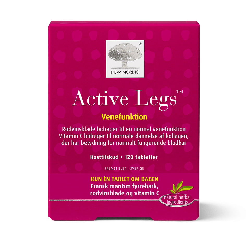 Vener transporterer blod tilbage til hjertet, og deres funktion er vigtig for at opretholde en aktiv og komfortabel livsstil. Active Legs kombinerer fransk maritim fyrrebark med rødvinsblade, sort peber og vitamin C. Rødvinsblade