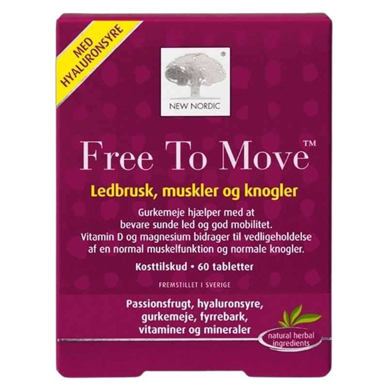 Ledbrusk, muskel og knogle sundhed er vigtig for at have det godt og for at opretholde en aktiv livsstil, hvilket Free To Move tabletter bidrager til. Tabletterne er baseret på passionsfrugt frø, sort peber, gurkemeje jordstængler og fyrrebark.