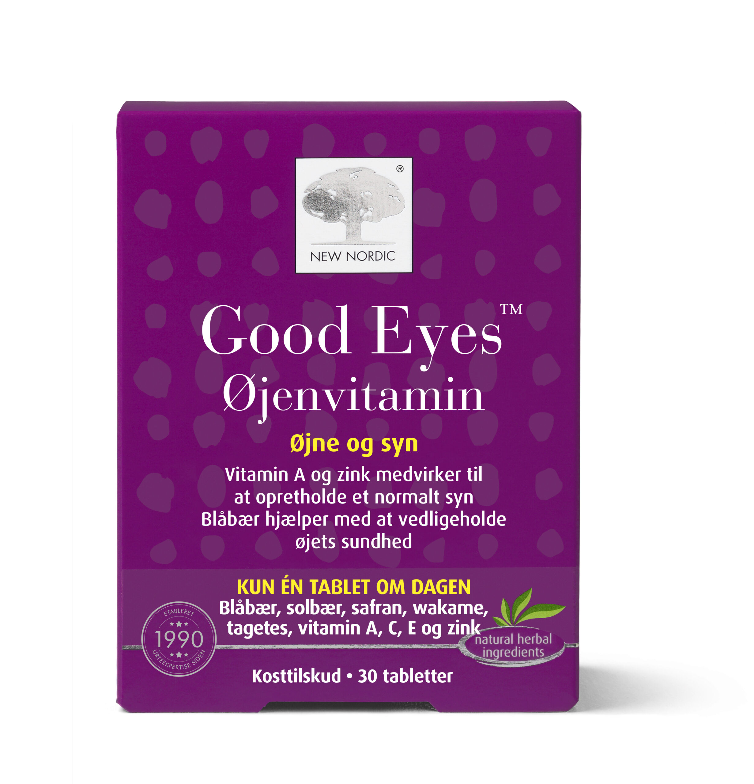 Good Eyes™ Øjenvitamin er en tablet baseret på vitamin A. Udover vitamin A indeholder tabletten ekstrakter af blåbær, solbær og safran i kombination med maritim fyrrebark og tagetes.