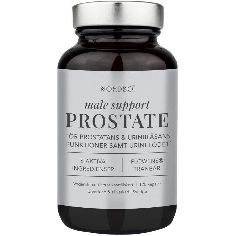 Nordbo Male Support ProstateNordbo Male Support Prostate er et kosttilskud med 6 aktive ingredienser: Flowens®, græskarkerner, granatæble, brændenælde, zink og selen. Zink bidrager til at vedligeholde et normalt testosteronniveau i blodet. Selen bidrager