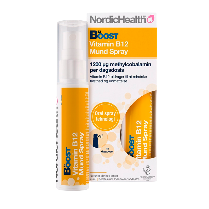 B12-vitamin oral spray der består af B12-vitaminet methylcobalamin.