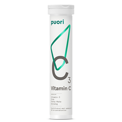 Køb Puori (PurePharma) C3 brusetablet med vitamin C fra bl.a. hypen, gojibær og acerola bær kombineret med ginseng og yerba mate ekstrakt.