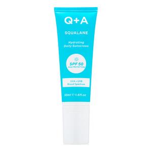 Q+A Squalane Hydrating Face Sunscreen SPF 50 er fugtgivende solcreme til daglig beskyttelse af ansigtet Squalane Hydrating Face Sunscreen SPF 50 fra Q+A er en let og nærende solcreme, der kombinerer intensiv fugt med effektiv solbeskyttelse. Solcremen ind