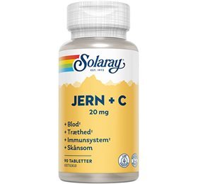 Jern + C er et unikt sammensat jernprodukt med C-vitamin, folat/folsyre, vitamin B6, B12 og urter. Jern i den organiske form ferrocitrat.