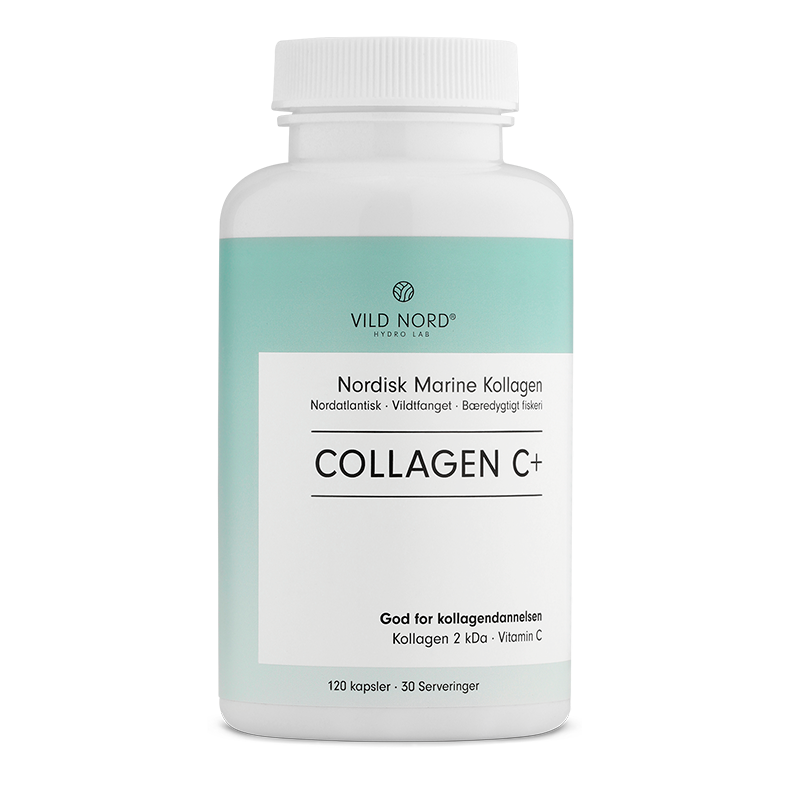 Dette kosttilskud indeholder Kollagen og Vitamin-C. En unik kombination, der bidrager til sund, smuk og stram hud samt afhjælper naturlige alderstegn i form af rynker. Kollagen i kapselform.